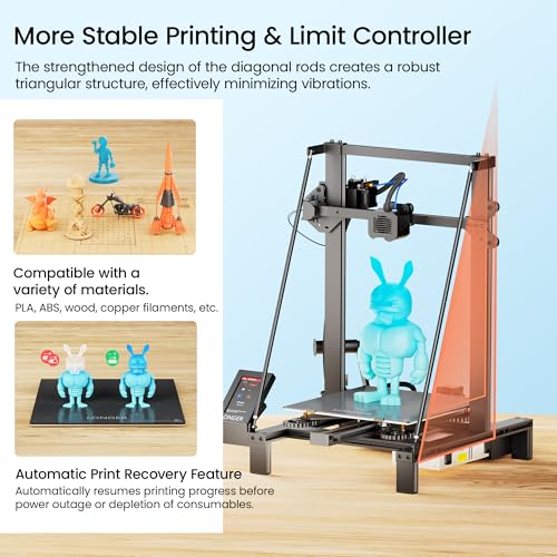 【90% Pre-assembled with Stable Triangular Structure】The Upgraded Longer LK5 Pro 3d large printer is 90% Pre-assembled with build size of 300*300*400mm. Plus the reinforced design of diagonal rods form a stable triangular structure, which can effectively reduce vibration and achieve more stable printing.