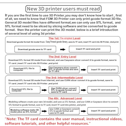 Complete Package for Beginners – Comes with everything you need to get started, including 10 meters of filament, TF card and reader, filament rack, screwdriver, and a detailed user manual.
