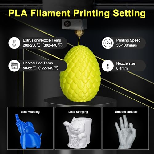 Clog-Free & Bubble-Free & Less-tangle: Completely dried for 24 hours before packaging with vacuum sealed , which can effectively protect the 3d filament from moisture ,lower shrinkage , lower warping; superb layer bonding and great fluidity for more smoother and more stable printing extrusion