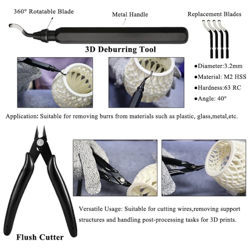 Support Removal & Cleaning Brushes: This versatile set includes essential tools like a hand drill for clean hole-making in printed models,, a deburring tool for smoothing rough edges, and wire cutters for support removal. Multiple brushes ensure thorough cleaning of your printer parts and finished models