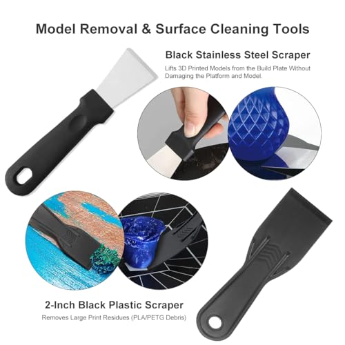Effortless Print Cleaning & Surface Prep. Tackle even the most stubborn filament with our professional-grade 3D printing tools featuring dual scrapers (plastic + stainless steel) – the ultimate removal tools for PLA, ABS, and PETG. Achieve museum-quality finishes precision files and sanding sticks, specially designed as model tools for post-processing. The included cut-resistant gloves provide superior protection during intensive cleanup sessions, making this the smartest choice for both 3D printing maintenance and model finishing tools.