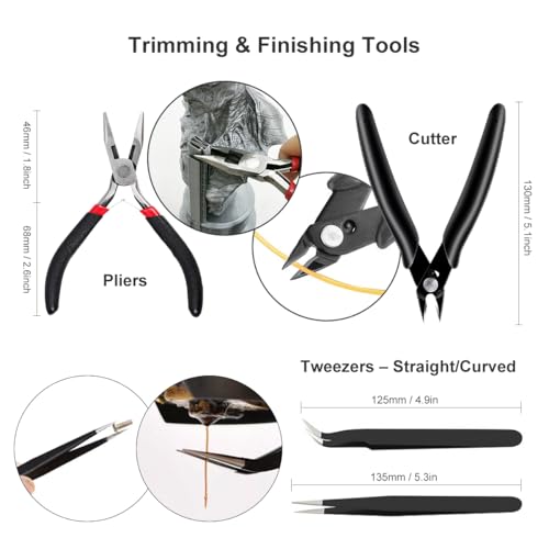 Precision Cutting & Trimming Tools. Achieve surgical-grade precision with our 3D printer tool kit, featuring heavy-duty wire and filament cutters and needle-nose pliers for flawless support removal. The Craft Knife Set and Deburring Tools for both rough cuts and delicate detailing. Perfect your creations with the included hand drill bits set – ideal for making precise holes and modifications. This comprehensive 3D printing cutting tools collection ensures you have the right print finishing tools for every project, from basic cleanup to professional-grade model refinement.