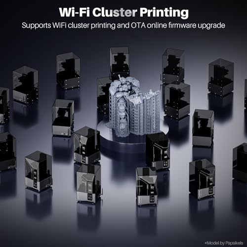 【WiFi Cluster Printing】ELEGOO Mars 5 Ultra supports file transfer without a USB, with speeds of 6-10Mbps, compatible with 2.4G and 5G networks. Multiple printers can print simultaneously on the same LAN, enabling remote control and secure, fast data transfer. OTA firmware upgrades are available for convenience