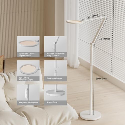 【Professional Eye Caring Standing Lamp】Our floor lamp adopts 96 SunturaluxTM full-spectrum LED lamp beads, providing the lighting effect close to natural light. CRI of ≥95 enhances the vibrant and true-to-life colors of objects.No blue light, glare and flicker,reducing the risk of myopia for long-time working or reading.