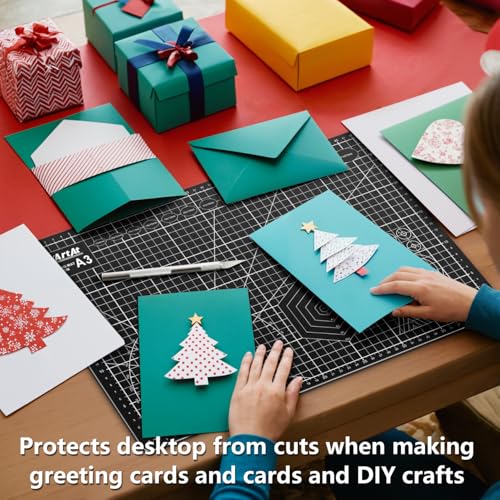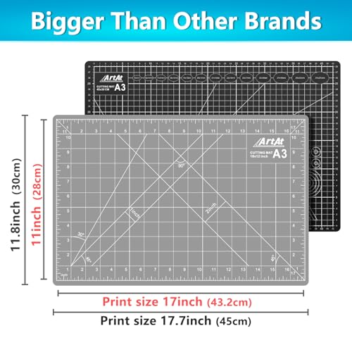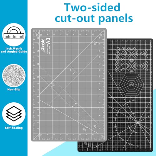 【A3 CUTTING MAT】Our cutting mat boasts a durable 5-ply self-healing design, complete with 1/2″ grid and 1/8″ marks for precise alignment, 30° 45° 60° 90° guides, and diagonal cutting lines.