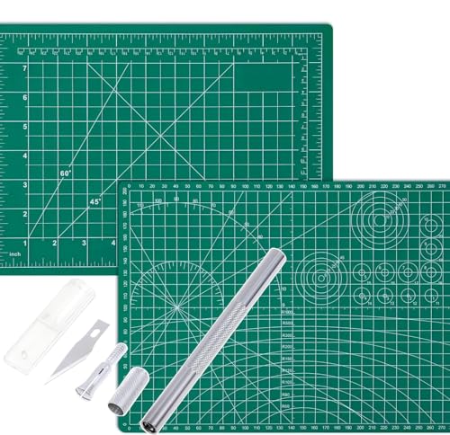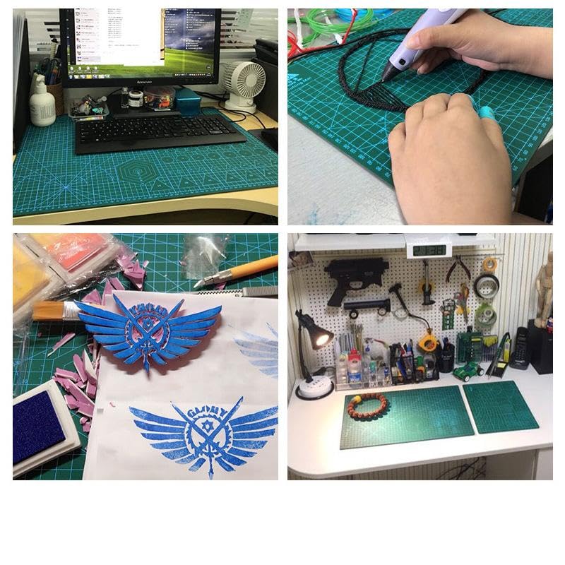 【PREMIUM QUALITY 】The 3mm thick cutting mat is made of high quality PVC and features with self-healing for protect your working table surface and craft knife. You can use this mat as a desktop protector or DIY cutting board. DOUBLE SIDED PRINTING – Designed with different angles and printing line. Including 1/2 centimeter grids, 1/10