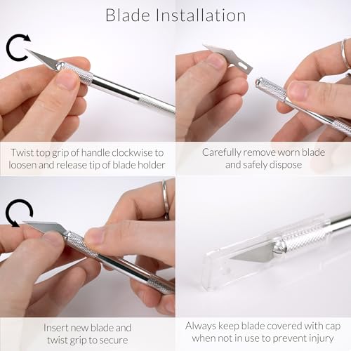 Pen Knife for Crafting and Hobby Knife Blades – This lightweight stencil cutter offers precise control, paired with a reliable hobby knife set featuring sharp craft blades and durable cutting blades. Spare #11 blades fit most craft knives, making this set an essential part of your craft supplies & materials
