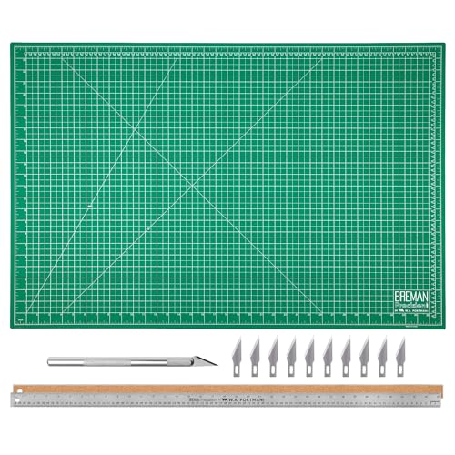 WA Portman 24×36 Inch Self Healing Cutting Mats for Crafts – Fabric Cutting Mat with Precision Craft Knife, 10 Hobby Knife Blades & Metal Ruler 36 Inch Cork Backed Ruler – All-in-One Craft Kit