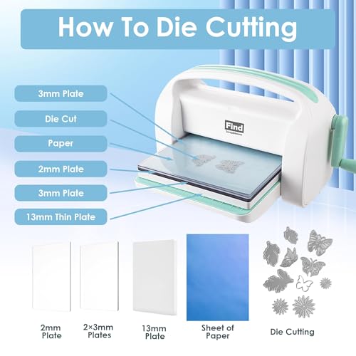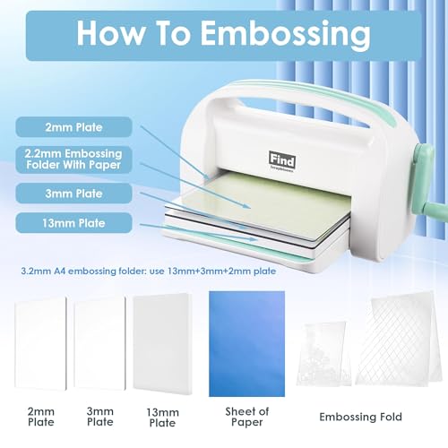 A4 Manual Die Cutting and embossing Machine comes with 10pcs colorful cardstock paper,2pcs die cuts, 1set clear stamp, 2pcs Embossing folder(A4 and 5*7inch Size), 2pcs 3mm plate ,1pc 2mm plate,1pc 13mm plate