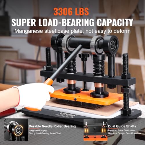 VEVOR Leather Cutting Machine, 26 x 12mm Embossing Plate Manual Die Cutter, 0.47 in Pressure Stroke Leather Embossing Machine, Dual Guide Shafts Die Cut Machine for Various of Materials