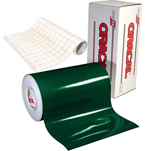 ORACAL 651 Gloss Dark Green Adhesive Craft Vinyl for Cameo, Cricut & Silhouette Including Free Roll of Clear Transfer Paper (15ft x 12″)