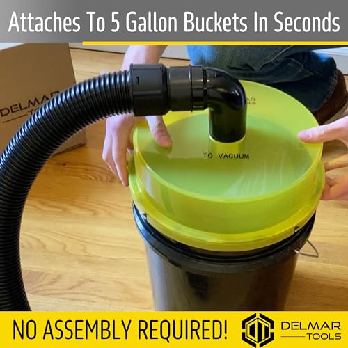 Low Profile Dust Separator With Lifetime Warranty, Wet/Dry Shop Vacuums, 99% Efficiency, Included 90° Adapter and 2.5″ Hose, Attaches to 5 Gallon Buckets in Seconds, Maximum Suction