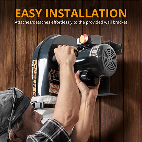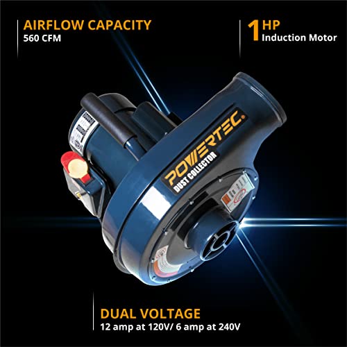 POWERTEC 1 HP, 560 CFM Wall Mount Dust Collector with 1 Micron Dust Collector Bags, Dust Collectors for Woodworking Dust Collection System (DC5371)