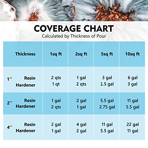 EASY TO OPERATE: The 2:1 mixing volume ratio is easy to control. You will have a working time of up to 4-8 hours to create your artwork, and the mixture takes 48-72 hours to cure. Both the working time and the curing times depend on the thickness of the resin and room temperature
