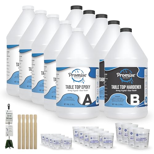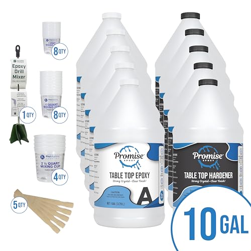 Promise Epoxy Table Top Epoxy Resin 10-Gallon Kit with Accessories –Clear Coat for Table Top Epoxy with Mixing Cups, Stir Sticks, and Helix Drill Mixer