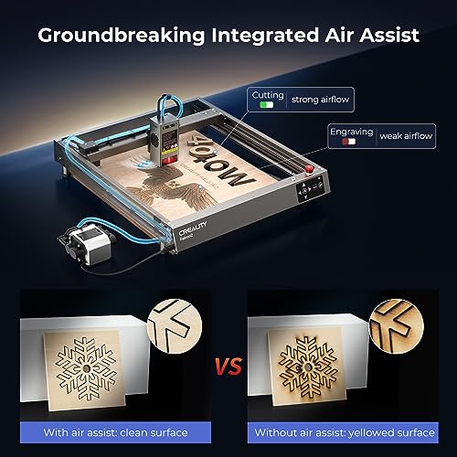 25000mm/min Cutting Speed -The laser cutting machine has an ultra-fast cutting speed of 25000mm/min, greatly improving productivity. This laser engraver comes standard with automatic integrated air assist, greatly improving cutting ability and quality, allowing you to get things done with less hassle.