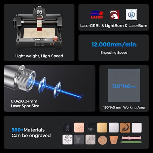 [Ultra-Portable & Beginner-Friendly] Take your creativity anywhere with the Longer Ray5 Mini Laser Engraver – one of the smallest and most portable laser engravers on the market. Pre-assembled and ready to use out of the box, it’s the perfect laser engraving machine for beginners, complete with step-by-step manuals and video tutorials. No setup hassle, just instant creativity.