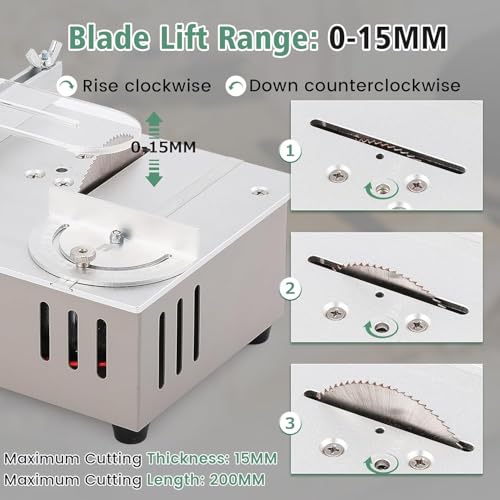 ⚙️Widely Used: The mini table saw is suitable for cutting circuit boards, plastics, PVC, wood, lumber, plastic and other materials. The mini table saw meets all your needs for model making and small DIY woodworking projects.