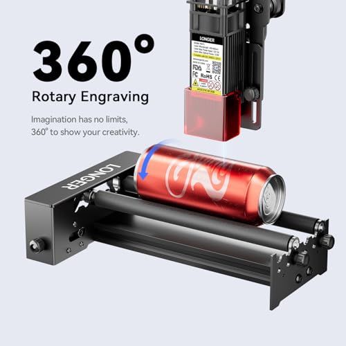 [360-Degree Rotation for Complete Precision] The Laser Rotary Roller enables seamless 360° engraving, perfectly suited for cylindrical and ultra-fine items like round wood, bowls, cups, cans, bottles, pipes, and drums.