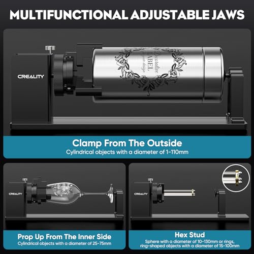 Enhanced Flexibility and Adaptability: Experience enhanced flexibility with the Creality Rotary Kit Pro, allowing you to tackle a wide range of engraving projects with ease. Its compatibility and versatility make it an indispensable accessory for both beginners and seasoned professionals alike