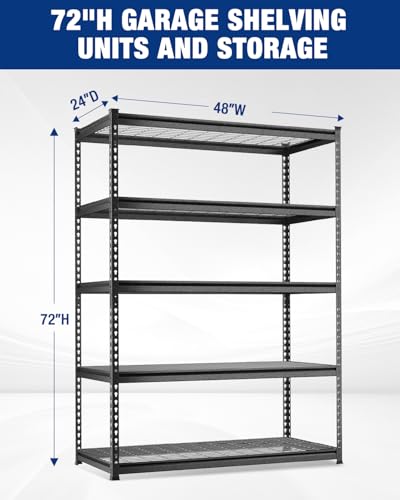 WORKPRO 5-Layer Heavy Duty Metal Storage Rack, 48”W x 24”D x 72”H, Adjustable Shelving Unit with 4000 lbs Total Load Capacity, for Garage, Kitchen, Bathroom, Warehouse