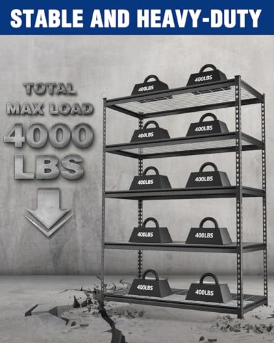 Exceptional Load-Bearing Capacity: This heavy-duty WORKPRO shelving unit is engineered with a durable metal frame and reinforced beams, allowing it to support up to 4000 lbs total (800 lbs per shelf). It’s designed to store heavy tools, bulk supplies, or large household items with ease, making it ideal for demanding environments like garages, workshops, and warehouses.