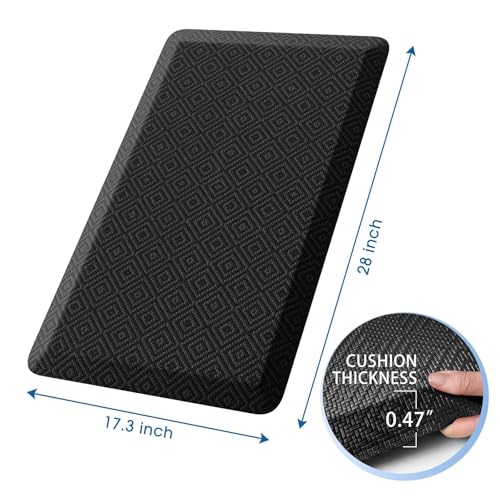 Mattitude Kitchen Mat Cushioned Anti-Fatigue Floor Mat Waterproof Non-Slip Mats and Rugs Standing and Comfort Desk Mats for House Sink Office Laundry (Black, 17.3″x28″)