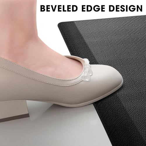 Stay Safety: comfort mat is designed with a bottom surface that features a unique pattern to prevent slipping and sliding; the beveled edges of the kitchen floor mat are intentionally crafted to reduce the risk of tripping