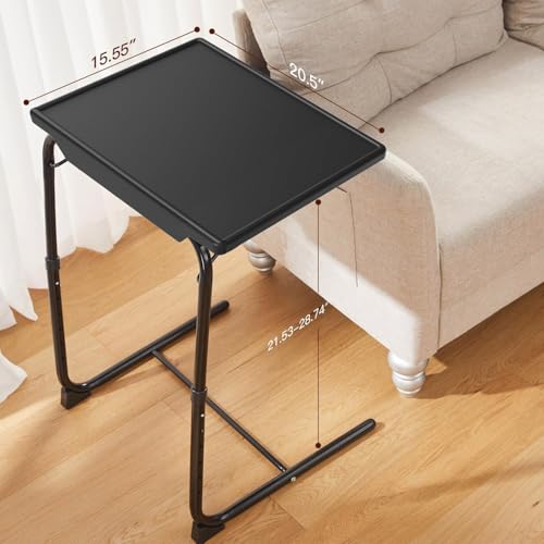 Adjustable TV Tray Table – TV Dinner Tray on Bed & Sofa, Comfortable Folding Table with 6 Height & 3 Tilt Angle Adjustments (Black)