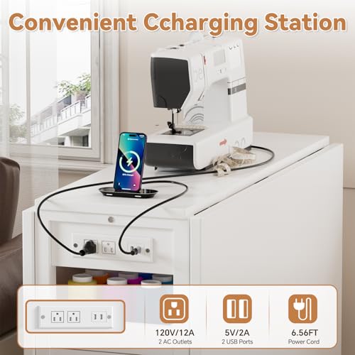 【Sewing Desk with Charging Station】- A modern sewing table designed for convenience, featuring a built-in power outlet and two USB ports. This allows you to easily charge or power your sewing machine, iron, and other devices right at your workstation.This versatile sewing table keeps you powered and organized.