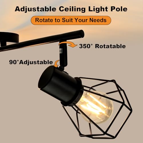 【350° Rotating Illumination】This black ceiling light offers flexible lamp head adapt lighting area. Customize with 350° horizontal and 90° vertical rotation. Effortlessly customize your desired lighting direction to illuminate various areas of the room.