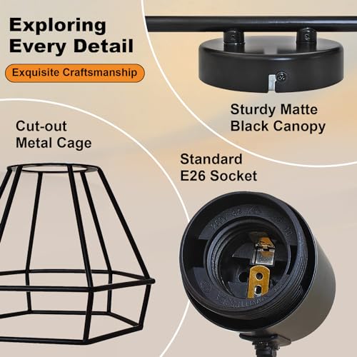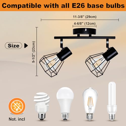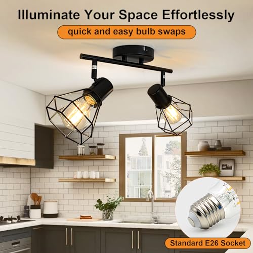 LED Track Lighting Kit, 2-Light Directional Ceiling Light Fixture, Black Metal Wire Cage Ceiling Spot Lighting Fitting for Kitchen, Bedroom, Art Wall, E26 Base, Bulbs Not Included