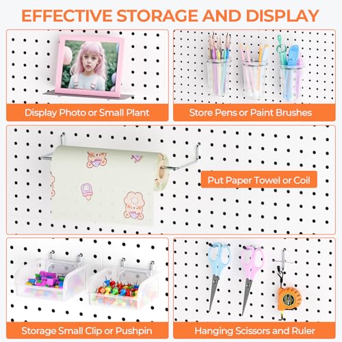 WIDE APPLICATION: The pegboard accessories could be arranged in a compact style, save more space and get effortless accessible for what you want. Ideal for storage solutions on a wide range of craft room, sewing room, office and garage