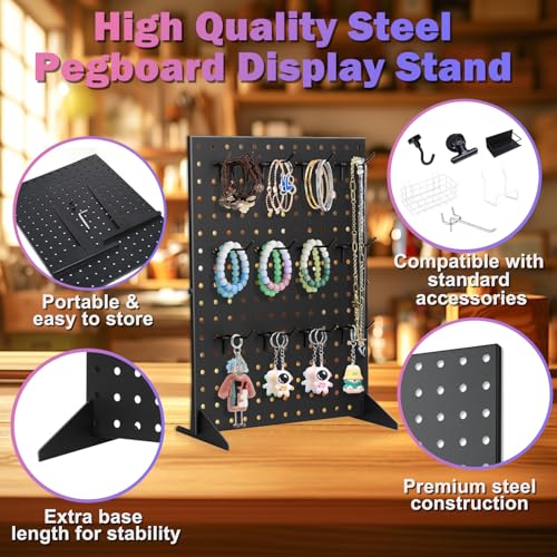 【Increase attractiveness】Peg board display stand serves as a practical display stand that can easily stand on a table and effectively showcase various products. Paired with various earrings, necklaces, and keychains, it can showcase a fashionable and professional appearance, attract customers’ attention and stay.
