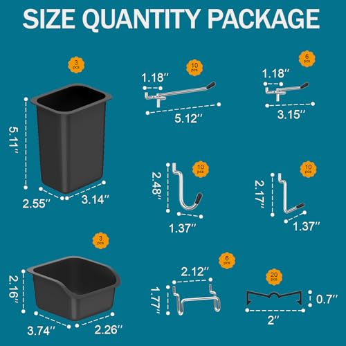 CONTAINS A WIDE RANGE OF ACCESSORIES: In addition to the installation accessories for the pegboard, the set also includes pegboard cups, pegboard boxes, and various hooks. You can fully unleash your imagination and make your beautiful life more tidy and beautiful