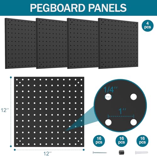 DIY COMBINATION: Each 12 x 12 inch pegboard with 1/4 inch holes, 4 pegboards can form a 48 x 12 inch / 24 X 24 inch pegboard wall. You can also DIY the desired shape and apply it to any wall to fully optimize the wall space