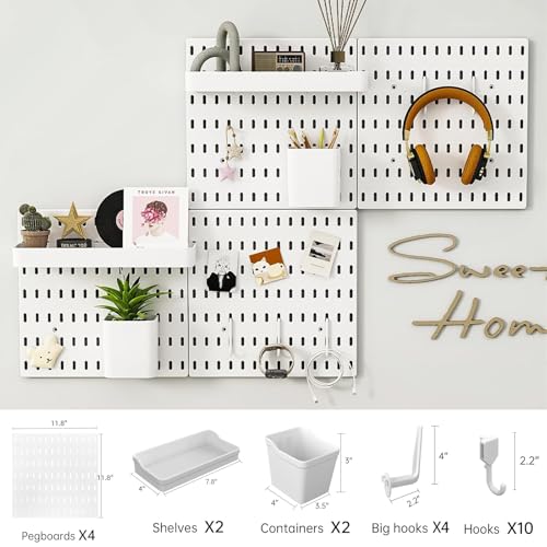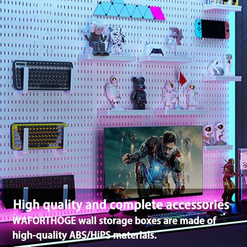 Durable Material with Complete Accessories: Our pegboard wall organizer is made from high-quality ABS/HIPS material, ensuring long-lasting durability. The set contains 4 pegboards (11.8″ x 11.8″), 10 small hooks (2.2″ x 4″), 4 large hooks (2.2″ x 4″), 2 long storage shelves (7.8″ x 4″), 2 small square storage shelves (4″ x 3.5″ x 3″). Customize your pegboard with this comprehensive accessory portfolio for all your gaming essentials. (LED light not included)