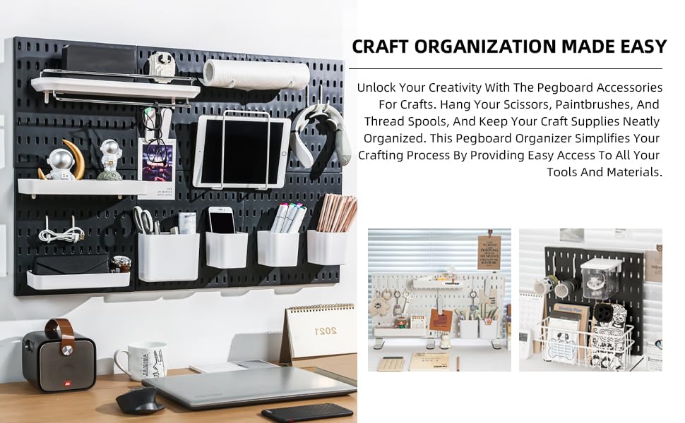 PEGBOARDS TRANSFORM SPACES:Pegboard Wall Systems Offer Convenient Storage Solutions For Various Environments, Such As Offices, Kitchens, And Play Areas. These Hanging Panels Help Transform Cluttered Spaces Into Well-Organized Environments Effortlessly With Innovative Combo Kits.