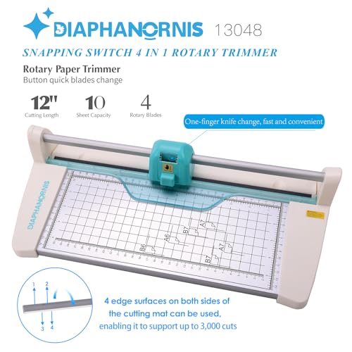 4-in-1Metal Rotary Paper Trimmer,12INPaper Cutter Cutting Length with Visual one-Click Blade Switching,Enclosed Blades for Safe Use,10-Sheet Precision Cutter for Cardstock,Photos,Scrapbooking