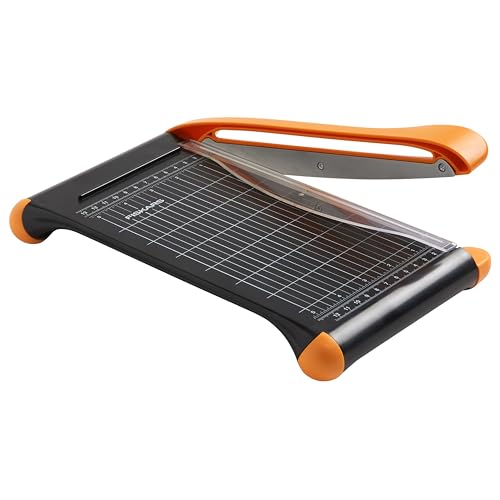 Fiskars Recycled Bypass Guillotine Paper Cutter – 9″ Cut Length – Craft Paper, Cardstock and Photo Trimmer – Suitable for Traveling – Self-Sharpening Blade