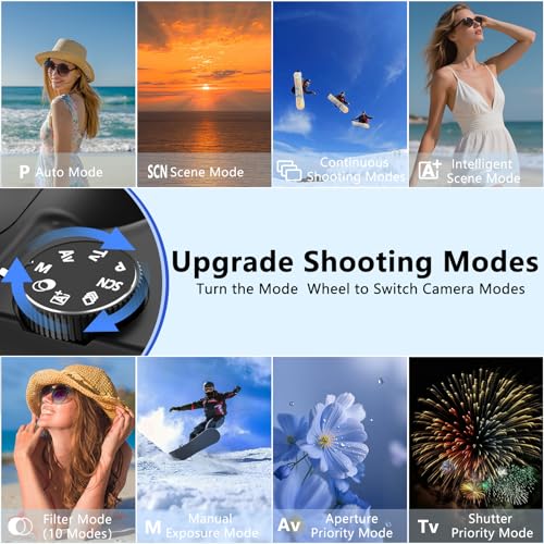 𝐒𝐦𝐚𝐫𝐭 𝐏𝐡𝐨𝐭𝐨𝐠𝐫𝐚𝐩𝐡𝐲 𝐂𝐚𝐦𝐞𝐫𝐚𝐬: Experience Point-and-Shoot Simplicity With 10+ filters & Timelapse Mode. Wireless app Control Enables TikTok/Instagram Sharing. Intelligent Scene Recognition Automatically Optimizes Night/Portrait/Sports Shots. Additional Features Like a Fill Light, Anti-shake, 3 Continuous Shooting, Smile & Face Detection, Beauty Face, Self-timer, Various Filters Encourage you to Stretch Creative Boundaries, ideal for Group Photos, Tripod use to Avoid Shake