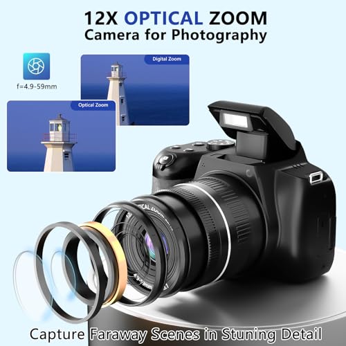 𝟏𝟐𝐗 𝐎𝐩𝐭𝐢𝐜𝐚𝐥 𝐙𝐨𝐨𝐦 & 𝐁𝐮𝐢𝐥𝐭-𝐢𝐧 𝐅𝐥𝐚𝐬𝐡: 72MP 12x Optical Zoom Digital Camera Captures Distant Scenery Details Without Losing Quality. The Digital Camera Built-in Flash Ensure Clear Low-Light Shots. With Fast Autofocus and Built-in Anti-shake, Every Shot Remains Sharp and Clear. This Professional Digital Camera is ideal for Beginner Photographers —ideal for Travel, Portraits, and Landscape Shots. Documenting Everyday Moments or Travel Experiences