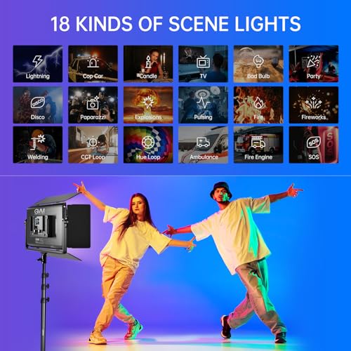 📱 Smart APP & On-Board Control: Easily adjust color temperature (2300K-5600K), brightness, HSI parameters, and scene effects using the intuitive LCD display with control knobs or via the GVM APP (iOS & Android) through Bluetooth. Perfect for solo creators, YouTubers, or studio teams who want quick, wireless lighting adjustments.