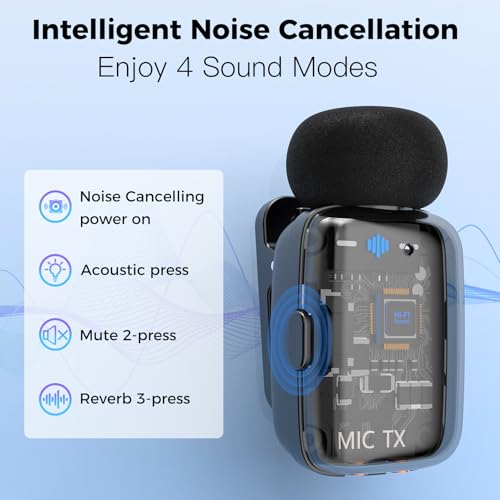 【Noise Reduction for Clearer Audio】Default blue-light mode activates noise cancellation, isolating your voice from background clutter in busy rooms or outdoor scenes. Want acoustic sound? Press once to switch to the green indicator and disable ANC. Whether you’re livestreaming, gaming, or vlogging in unpredictable environments, this mini wireless mic keeps your voice clear, focused, and free from unwanted ambient noise.