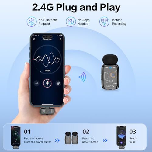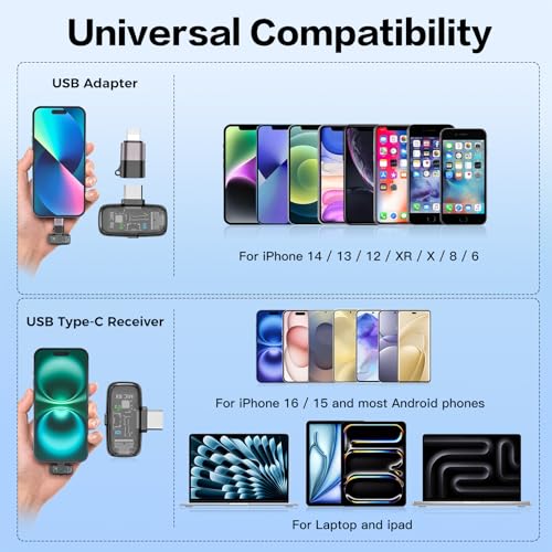 【Instant Plug-and-Play Across All Devices】Start recording in seconds—no Bluetooth or app required. Includes a USB-C receiver for Android, iPhone 15/16, iPads, and PCs, plus a Lightning adapter for older iPhones. Dual transmitters allow for two-person recording—perfect for interviews or collabs. Creators on the move will love the instant setup and pro-grade audio, wherever they’re filming or streaming.