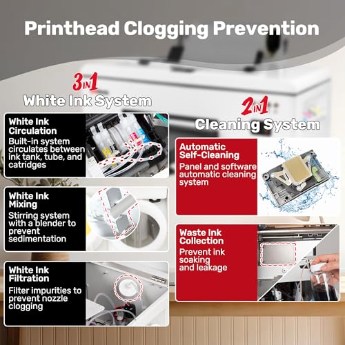 ✅[DTF Printer Advantages] Compared to DTG printer, DTF printers eliminate pre-treatment, excel on dark fabrics, and produce vibrant, durable colors. Unlike sublimation printer, they support more materials beyond light polyester. DTF prints are easy to store and transfer, with lower maintenance and higher efficiency, making them perfect for small businesses seeking cost-effective, versatile solutions.