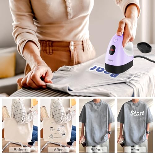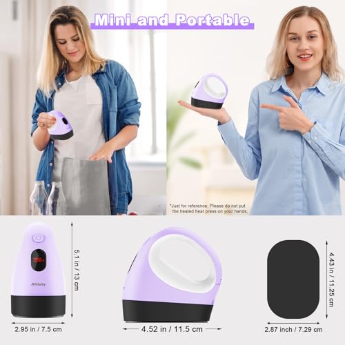 Mini Heat Press Machine, Mini Heat Transfer Iron, 3 Settings Levels & Visible Temp, Portable Press Easy for Crafts, T-Shirt, Hats, Shoes, Bags, Cap and Small Vinyl Projects(Purple)