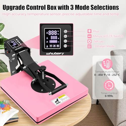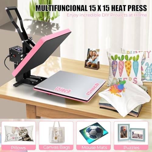 Whubefy Heat Press 15×15 Slide Out, Clamshell Heat Press Machine for T-Shirts, Bags, Mouse Pads & More, Dual-Tube Fast Heating, Digital Industrial Sublimation Printer for Heat Transfer (Pink)
