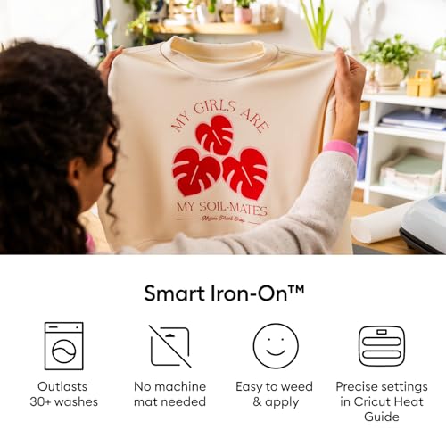 Just add heat! With Cricut® Smart Iron-On™ Matless Heat Transfer Vinyl, you can personalize T-shirts, jackets, backpacks, and so much more. Plus, this material requires no machine mat, saving you time and simplifying your making experience. It’s the same Smart Iron-On you love in bulk size and with simplified packaging, so we can pass the savings on to you. All Cricut materials are optimized for Cricut cutting machines with automatic cut settings in Design Space® to ensure you have the best cutting experience.