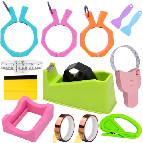🌺【Valued Sublimation Tumblers Tool Set】:❶ Size: 30 oz Tumblers Pincher ❷ Size: 20 oz Tumblers Pincher ❸ Size: 15 oz Tumblers Pincher ❹ 2x Small Squeegee ❺ Felt Edge Squeegee ❻ Tumblers width Measurer❼ Silicone Cup Cradle ❽Desktop Heat Tape Dispenser ❾Heat Tape X2 ⑩Wrapping Paper Cutter ⑪Automatic Telescopic Tape Measure